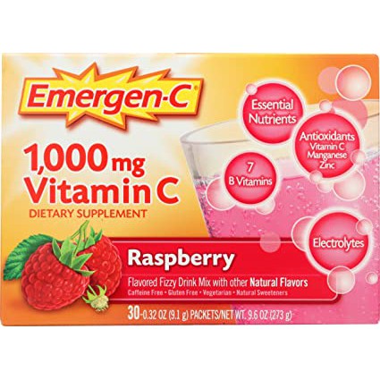 Emergen-C Vitamin C Flavored Fizzy Drink Mix Packets, Super ... Antioxidants and electrolytes. Health: 1,000 mg of vitamin C, zinc, quercetin, and antioxidants support your immune system. Energy: 7 B vitamins including B1, ... Emergen-C Everyday Immune Support Products Packed with Vitamin C, plus other key antioxidants† to support your immune system and B Vitamins to enhance energy* naturally, Emergen-C dietary supplements are ... Emergen-C Vitamin C 1000Mg Powder Raspberry - H-E-B Nutrition Facts · Amount Per Serving. Calories. 35 · % Daily Value · Total Carbohydrate. 8g; 3% · Total Sugars. 6g · Sodium (as Sodium Bicarbonate, Monobasic Sodium ...